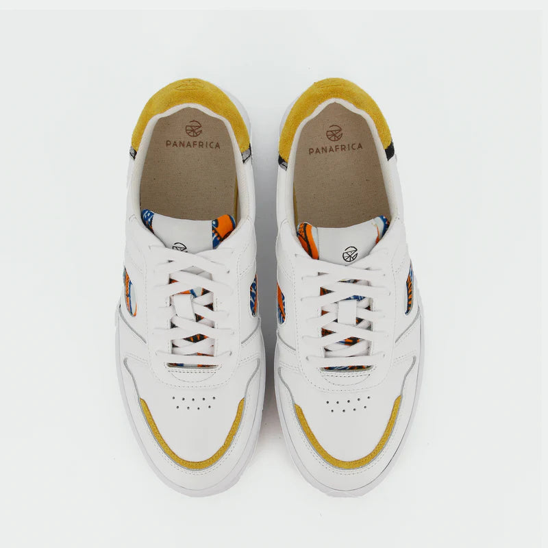 Détails en jaune moutarde sur l’avant de la chaussure (près de la toe box), créant un rappel harmonieux avec l’arrière.