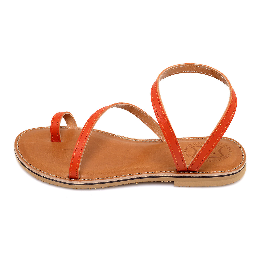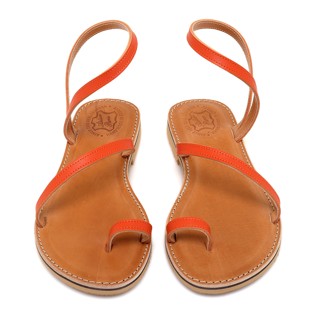 Sandales en cuir au look raffiné avec une bride fine croisée en cuir orange et un passant d’orteil pour un maintien élégant. Leur design apporte une touche moderne et estivale.